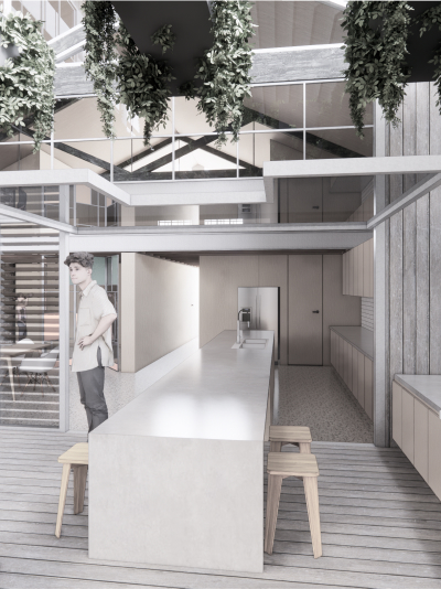 This project proposed a new storey addition to an existing combined residential and commercial use pair of townhouses. The funky timber lined addition provides additional bedrooms and visually breaks up the building bulk.